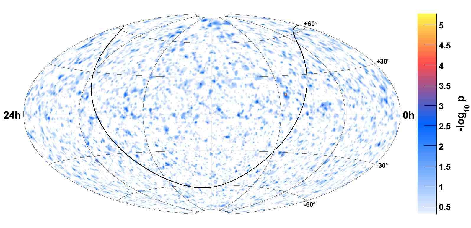 present) calculated: (1) a scan of the entire sky for point sources (p=18%), (2) a