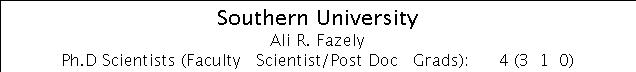 Ali R. Fazely -- Detector Simulations, Analysis tools, Geant/GCALOR. (0.3 FTE) Source of Support: SUBR Faculty, Summer salary: IceCube M&O, NSF/EPSCoR
