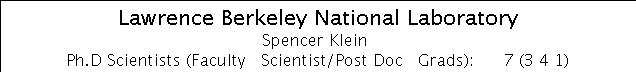 | KE | KLEIN ,SPENCER | Administration | Supervise LBNL effort | NSF M&O Core | 0.05