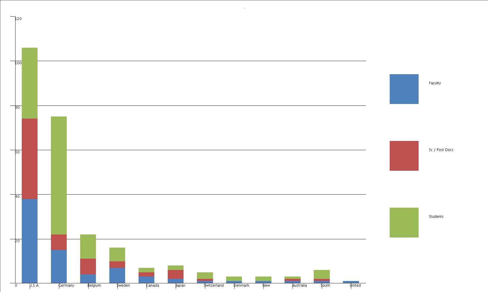 Total | Institution | Ph.D. scientists | Faculty | Scientists / Post Docs | v8.3 April 2010 | v14 April 2013 | Difference 2010--> 2013 |