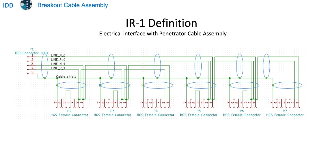 The Main Cable Assembly connects to a DOM’s Penetrator Cable Assembly via an intermediate cable called the Breakout Cable Assembly (BCA), which is currently in development. Interfaces in the upgrade project are defined as engineering requirements and described in each item’s “Interface Definition Document” (IDD), where all external interfaces are listed and each interface is specified in detail. An excerpt from the draft BCA IDD is provided below: The draft BCA IDD document has also been uploaded to the folder.