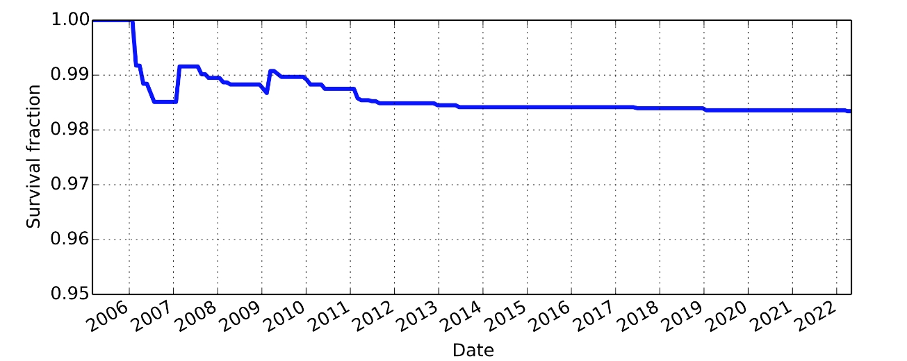Gen1 DOM Survival fraction as a function of time